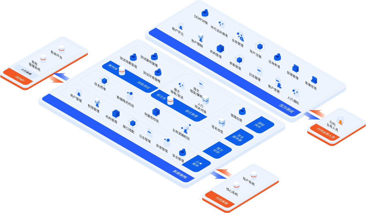 支持日志管理,包括交互日志、操作日志以及賬戶變更情況日志;支持系統權限分配與管理,校驗規則配置、碼值管理。可充分滿足銀行與人行清算中心開展賬戶業務的多種場景以及安全管理要求。